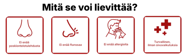Tämä edistyksellinen teknologia on suunniteltu torjumaan oireita kuten nenän tukkoisuutta ja yskää sekä tukemaan immuunijärjestelmää.