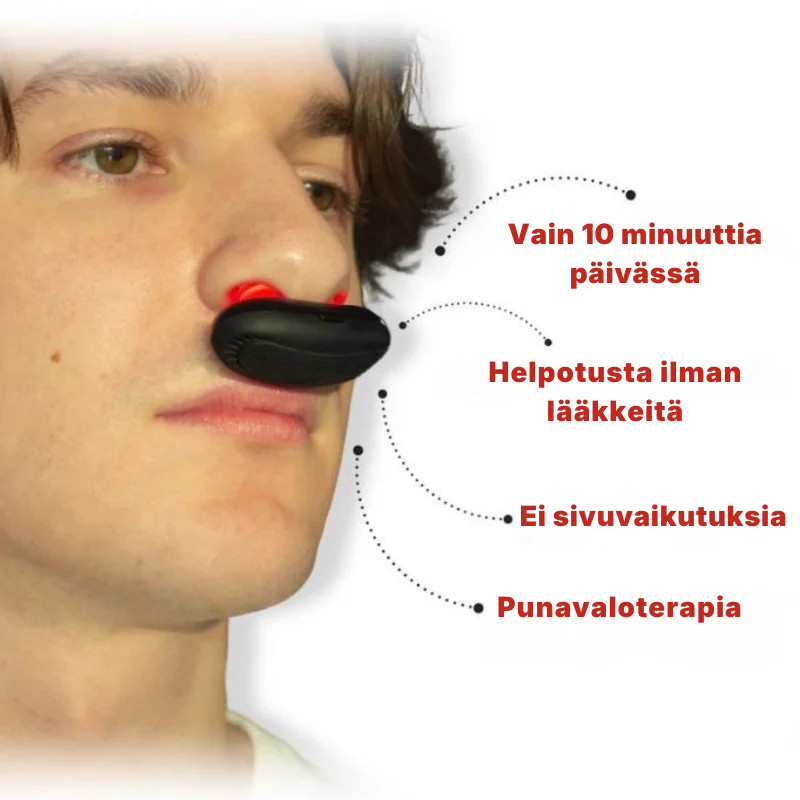 Laite lähettää syvälle tunkeutuvaa punaista valoa, joka on kliinisesti tutkittu ja joka parantaa solujen aineenvaihduntaa sekä vähentää nenän tulehdusta.