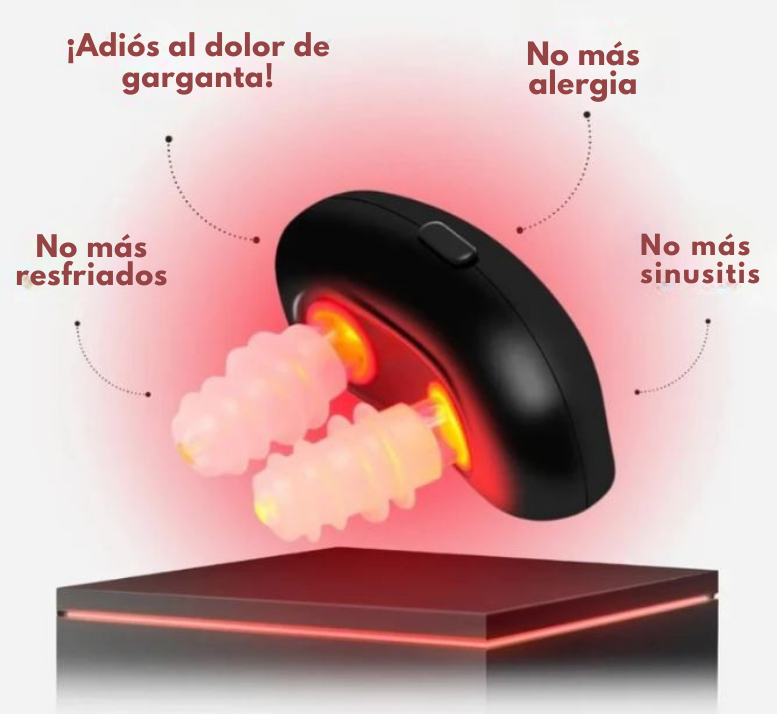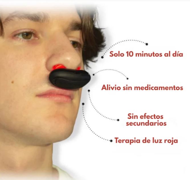 El dispositivo emite una luz roja profunda, clínicamente probada, que mejora el metabolismo celular y reduce la inflamación nasal.